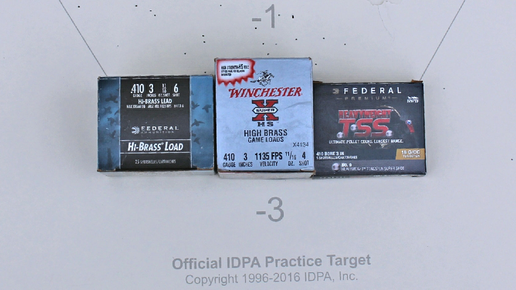 Two lead birdshot loads were tested in addition to the TSS shell to compare differences in pattern density.
