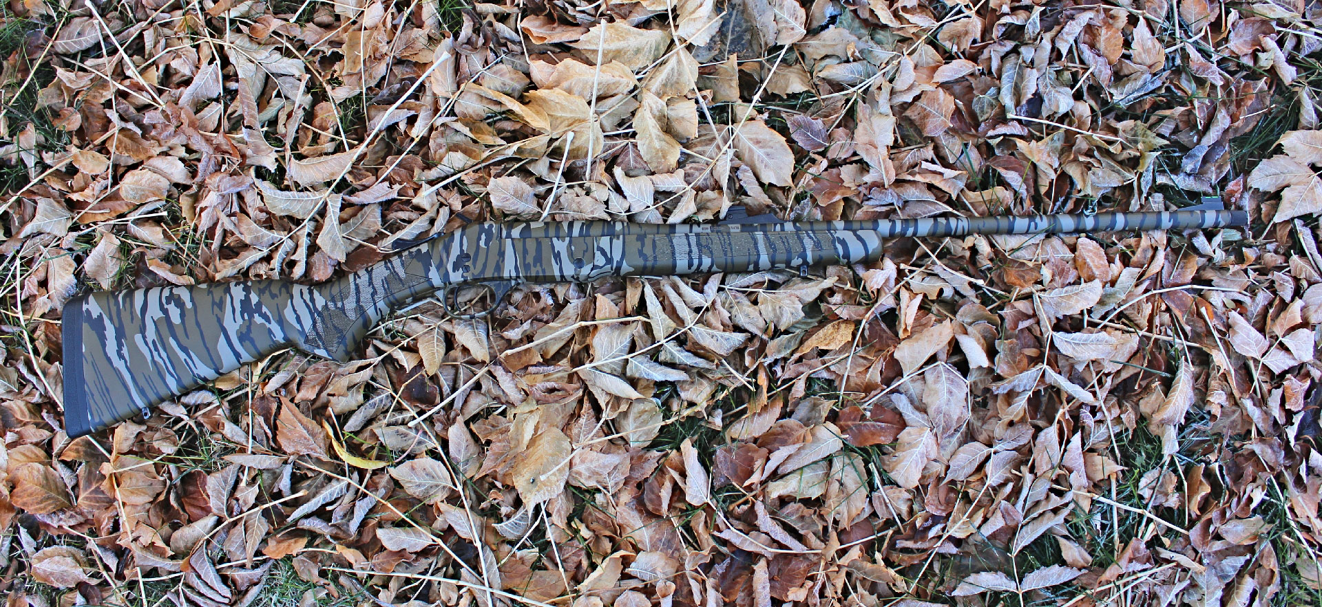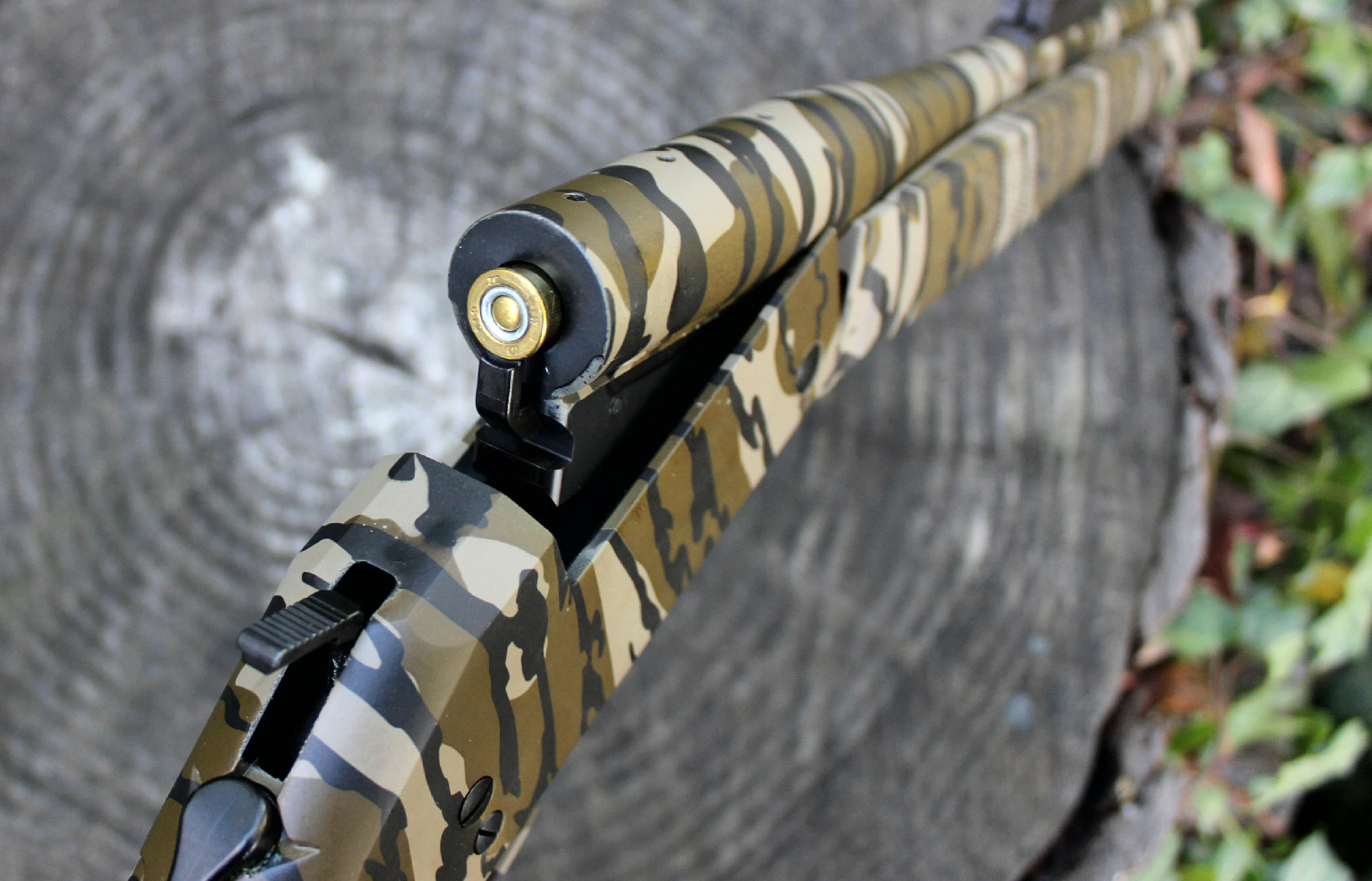 This model has been treated with an overall Mossy Oak camouflage finish.