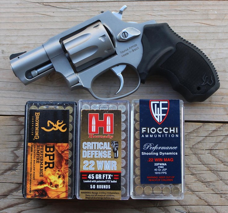 Small double-action revolvers chambered in .22 Mag. are comfortable to carry, they produce modest levels of felt recoil, similar to those of a .22 LR pistol, while packing more of a punch than .22 LRs do. A 4" barrel .22 LR can be loaded to produce results at the low end of the .22 Mag. snubgun's performance levels. But when loaded with 40 gr. or heavier bullets, .22 Mag. revolvers can more consistently meet FBI standards for effective penetration depths in gel tests (see Richard Mann’s test results here). In my experience, .22 Mag. ammunition on the whole, is more reliable than .22 LR ammunition with fewer bad primers and more sophisticated bullet design. (Shown: Speer’s Gold Dot bullet is specifically designed to expand when fired from short revolver barrels.)