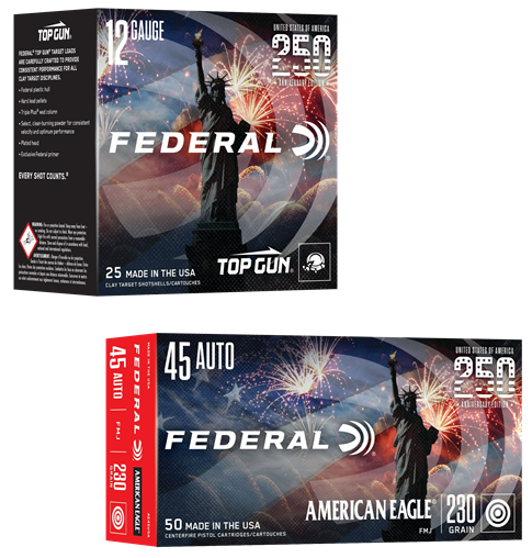 “As our country approaches this historic milestone, we wanted to offer shooters something they can enjoy at the range today while also holding onto as a collectible for years to come,” said Federal’s Vice President of Marketing, Jason Nash. “These America 250th loads deliver trusted Federal performance across our most popular target lines, paired with packaging that honors the American spirit and the next 250 years.”