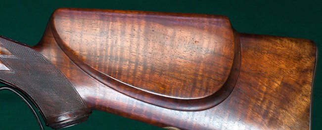 The shadowline cheekpiece has very distinct and sharp angles and lines as opposed to rounded cheekpieces. The cheekpiece goes from a sharp outer edge and elegantly curves in a smooth concave arch to the stock. The shadowline cheekpiece is usually found on high-end and custom firearms.