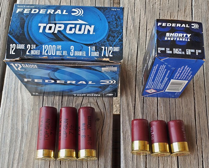 Federal Ammunition’s Shorty 1¾" shells (right) are available in birdshot, buckshot and slug loads.
