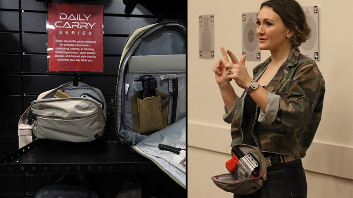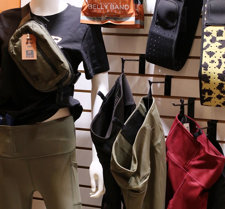 Vertx offers a wide variety of active and tactical clothing for women. At SHOT Show I was invited to a training session with champion competitive shooter Lena Miculek where she demonstrated her technique for concealed carry in the Vertx Everyday Fanny Pack+. The “plus” is a little larger pack that will fit full-size pistols, but they also offer a smaller model for compact carry. The pistol is secured in a hard-shell holster within the pack and the zippers can be easily opened with one hand. The Everyday Fanny Pack+ sells for $65.