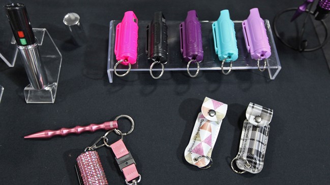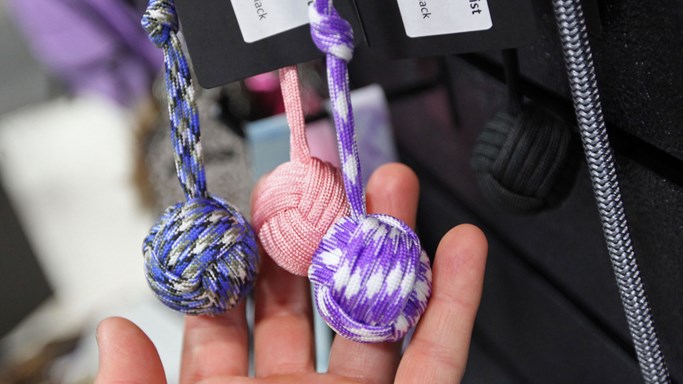 New this year, Lady Conceal also was showcasing their Monkey Fist defense products. Just as you would imagine being hit in the face by a monkey’s tiny fist would feel like, the device is a small steel ball wrapped in colorful paracord and designed to be used as a self-defense striking tool. The Monkey Fist can be clipped to a belt loop, backpack or keychain. With color options of pink, purple, blue or black the Monkey Fist sells for $13.