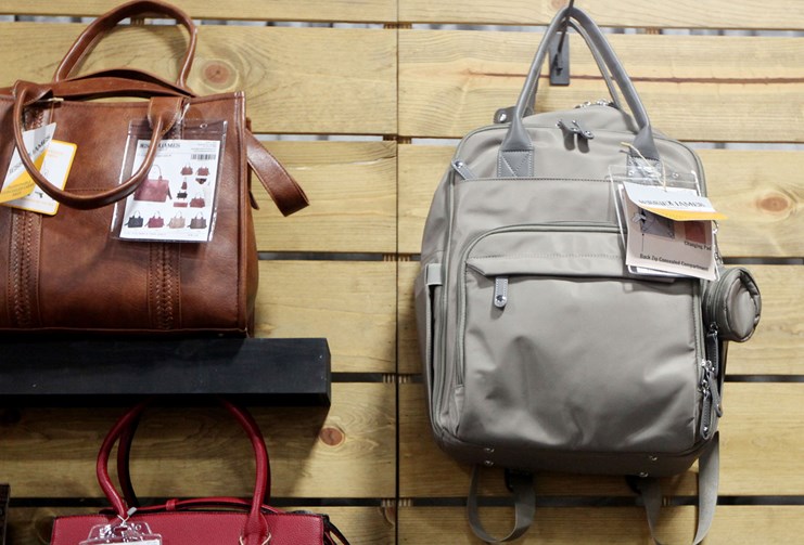 Handbag and purse company Jessie & James introduced a new concept for a concealed-carry option—a diaper bag. With the complete functionality of a diaper bag backpack (changing pad, insulated bottle pockets, wipe compartment) it also has a lockable back pocket to secure and conceal a handgun. The BeBe Nylon Diaper Bag retails for $165.