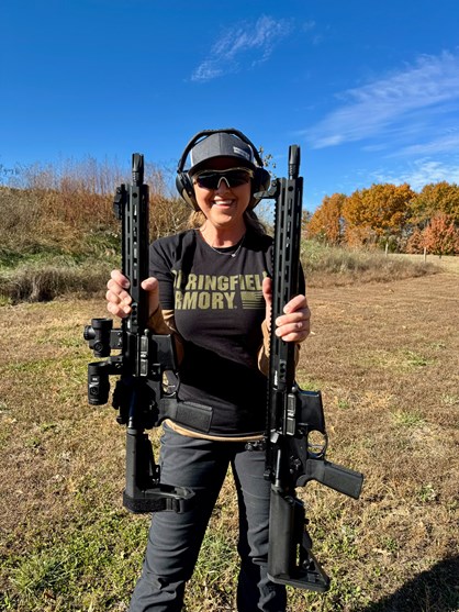 Springfield Brand Ambassador Julie Golob, a world champion professional shooter with more than 175 championship titles to her name, says the AR accessory market is huge—from handguards to triggers. “Many people choose to make upgrades for ease of use, as well as adding lights, lasers, and slings,” but says the SAINT Victors offer so much without having to spend time and money on all the extras on the rifle itself. “The nickel boron trigger is flat, fast, and smooth. Seven QD cups in standard locations allow for adapting slings and setting them up in various positions.” She notes that a flared magwell “adds a bit of forgiveness to reloads” while serving as a funnel to guide magazines into position. “It’s already feature-packed. Add a sling, a magnified optic, and/or a red dot, purchase a few extra mags, and you’re ready to go to test your speed and accuracy while having a ton of fun,” she says.