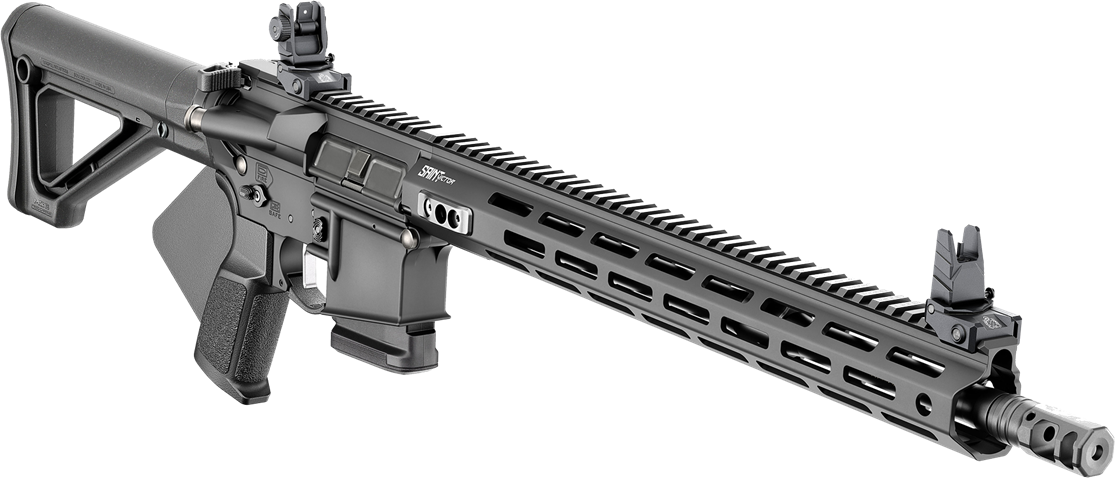 Rounding out the package in the new rifles are enhanced stocks, type 23 P-Grip pistol grips and polymer trigger guards, 45-degree ambidextrous safety levers, low-profile aluminum flip-up sights, nickel boron-coated triggers, and Gen M3 PMAG magazines. The 5.56 mm pistol features an SB Tactical SBA3 brace. Colors offered include black, as well as Cerakote Coyote Brown and Tungsten Gray models.