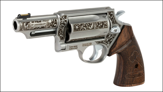 Nevertheless, the Judge has thrived for two decades. It is currently available in 20 different configurations, including the just-released 20th Anniversary model shown here. Based on the Executive Grade model, the 20th Anniversary sports a 3" barrel, a tuned action, polished stainless steel finish, brass bead front sight and a hardwood grip. What sets this revolver apart from the line-up is extensive floral-pattern engraving around the cylinder and along both sides of the frame and barrel. MSRP: $681.99