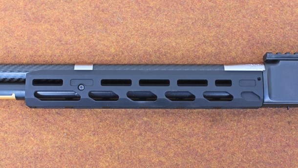 The slim aluminum fore-end features a series of M-LOK accessory slots.