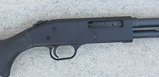 This shotgun’s 590 style aluminum receiver is drilled and tapped for an optics rail.