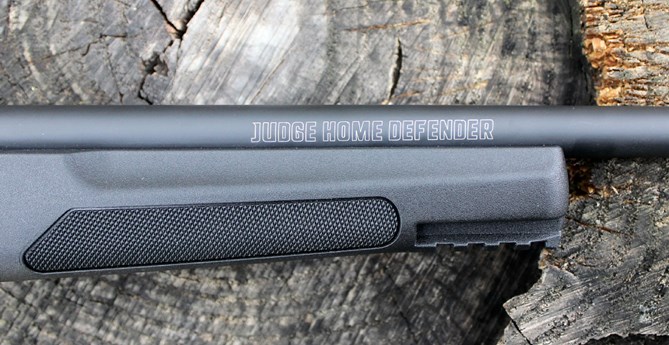 Unloaded, the Home Defender tips the scales at 58 oz. (3 lbs. 10 ozs.) making it significantly lighter than the Shockwave (4 lbs. 4 oz.) and the Axe (5 lbs. 14.6 oz.). However, it weighs between 26 oz. to 29 oz. heavier than typical Taurus Judge revolvers. The added forward weight and being able to grasp the textured polymer forend with the support hand tames the felt recoil noticeably, making this version of the Judge easier to control and more comfortable to shoot.