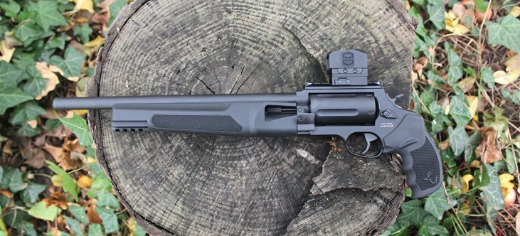 The revolver arrives weapon's-light and optics ready right out of the box. The rubber revolver grip feels familiar, points more naturally and keeps the shooting hand wrist straighter than the Shockwave style grips. A micro red dot optic provides a useful, intuitive sight picture in most lighting conditions.