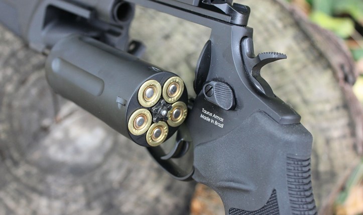 Verifying if a gun is loaded is quicker and easier with a swing-out cylinder than a tubular magazine. This gun can fire .45 Colt, and do so accurately, in addition to 2.5" and 3" .410-bore shotgun shells. But the standout feature when compared to the non-NFAs is that there is no need to practice working a pump or swinging a lever between shots. Just pull the trigger to fire the next round.