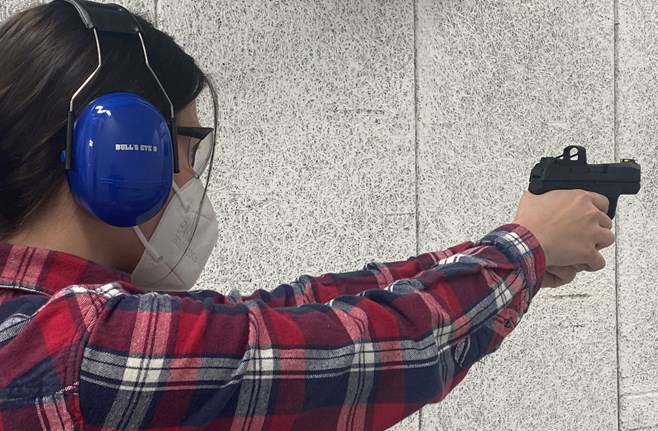NRA Women Assistant Editor Ashley Thess fires the Ruger MAX-9 outfitted with micro red-dot sight.