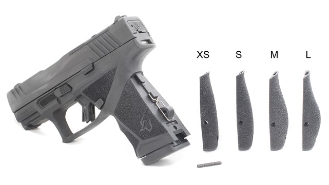 To further tailor the fit of the pistol, each TX9 comes with four backstrap options: extra small, small, medium and large. These swap around easily by removing the small pin that holds them in place.