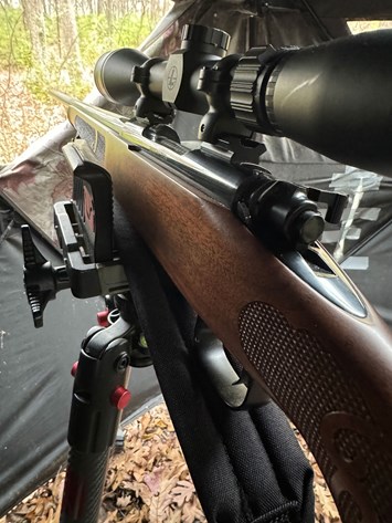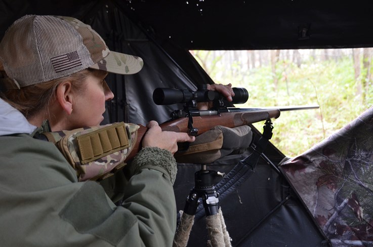 While hunting from a blind allows you to move without potentially giving away your presence to deer, your movement is still somewhat restricted. Usually your port is a window, and you are set up over and area, such as a known deer trail. You might only be able to see one area through that window in your blind. Consider how you might have to swing or move your gun to get a hit and whether you can do that quietly and without tipping your tripod. Hint: a weight or sandbag hung under the tripod can lend stability.