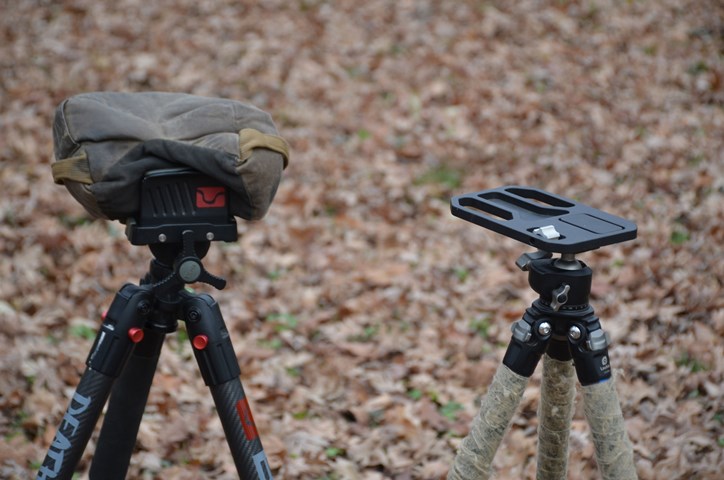 Pro tip: If you plan to use a bag on top of your tripod, using something like an Arca Plate gives you a really wide platform, but you can also set a bag on a normal tripod as well. Just consider it will be higher, and you will have to shorten the legs a little more than normal. Also, set up your tripod with the pan and tilt control knobs on your support side (for right-handed people, this means set them on the left). This allows you to adjust and tighten the controls while looking through the optic. If you must adjust while trying to make a shot, having it set up this way and practicing with it will really help!