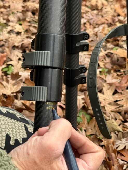Ideally, you would make a trip to your stand before hunting season to test out your chair, tripod and make sure everything is set up properly. But if you are hunting public land or your timeline doesn’t allow for it, test it out at home. Position yourself and test the tripod leg height while seated. If you don’t know what you will have for a seat, it’s a good idea to figure out a setting using a low chair and then use a black marker to mark the legs. This will make it easier on opening morning by being faster and making less noise and movement. You could also mark out the height for a kneeling position or sitting position, if you are using a ground blind or anticipate an elevated shot (say you’re hunting elk in the mountains). Having just a little time behind the tripod will help you to understand what’s going to be the most efficient on your hunt and increase your odds of making the perfect shot.