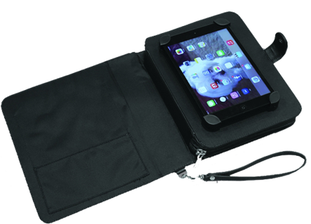 Last but not least, we’re excited about the iDefense planner, which is on the other end of the size spectrum. At 10" long by 8" wide, it carries not only a defensive handgun, but a tablet computer. The tablet is held in place outside the gun compartment on a sturdy backing plate that’s fully adjustable for tablet angle. The iDefense also features an internal pocket for storage of documents or small items. Like its little sister the Defense Planner, it’s available in black, brown or tan and features a detachable wrist lanyard for extra security. MSRP $184. For more, check out galcousa.com!