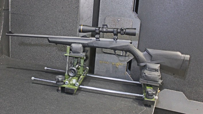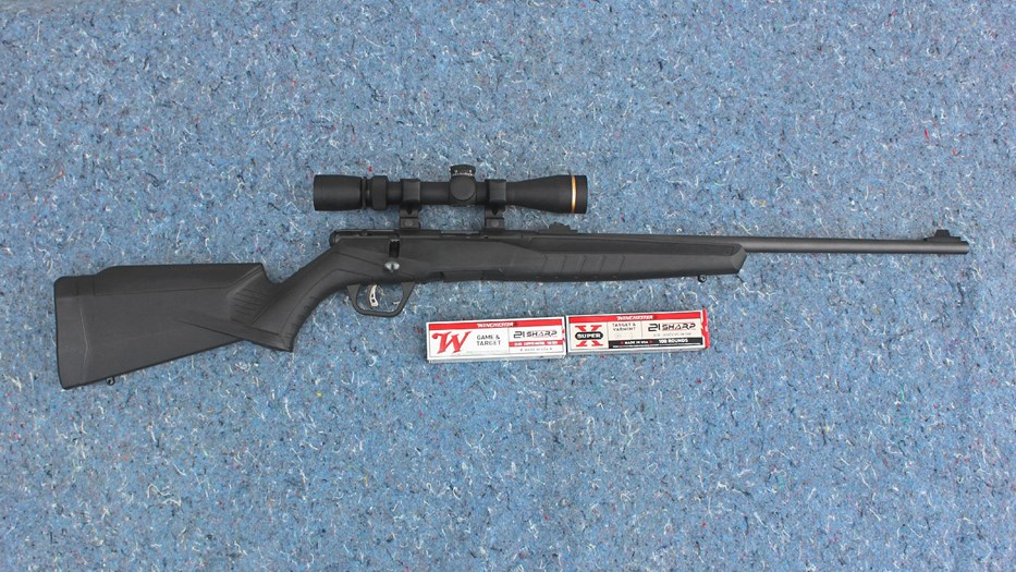 For this evaluation, I went with the top-notch B21 bolt-action rifle (#70242; $349). I've worked with this company's rimfire rifles in the past and found that they balance price, features and function quite nicely. The 21" long Sporter profile barrel is made from a carbon-steel alloy, button-rifled and treated with a matte-black blued finish, just like the receiver. The barreled action is supported by a lightweight, black synthetic shoulder stock.