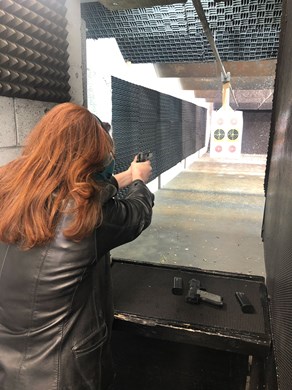 From that point forward, Liz began training in pistol shooting and has since become an NRA Certified Pistol Instructor and range safety officer.